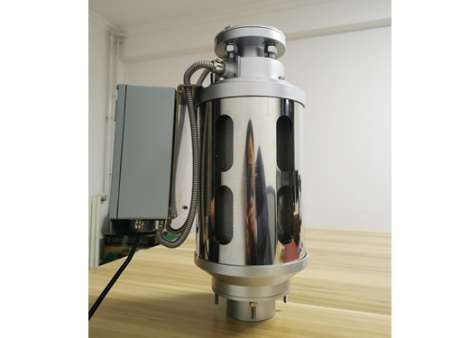 MHXQ型免維護吸濕器是當儲油柜吸進空氣時,空氣通過燒結的金屬過濾網,進入吸濕器內部。燒結金屬過濾網對空氣中的灰塵進行過濾,經過濾后的空氣流經干燥室,空氣中的水分因為干燥劑充分吸收,達到干燥空氣的目的。空氣的相對濕度由安裝在吸濕內部的溫濕度傳感器進行監測,該相對濕度是干燥劑飽和指示劑,當超過設定濕度時,干燥劑通過安裝在干燥室內的加熱元件進行烘干,烘干過程中所產生的水蒸汽通過對流向四周擴散,通過金屬網到達玻璃筒,并在玻璃筒上冷凝,冷凝的水珠沿玻璃筒流向安裝在底部的金屬法蘭,并流出吸濕器,當溫濕度傳感器出現故障時,控制盒內設有定時控制器,可按照預定的時間間隔對干燥劑進行加熱控制,使吸濕器達到免維護的目的。